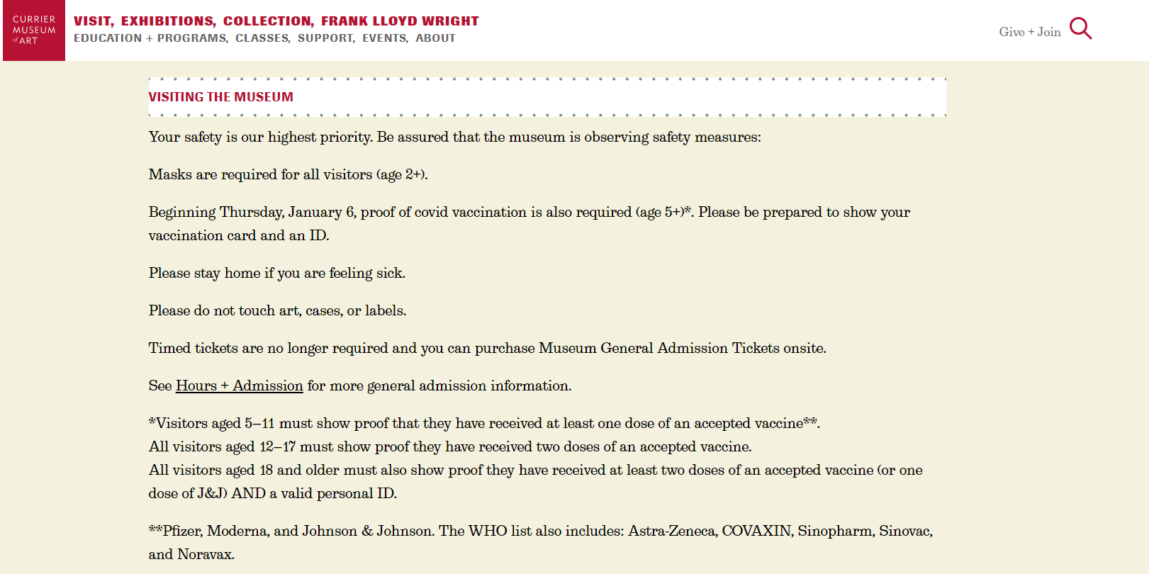 The Currier Museum in Manchester has announced that beginning Jan 6th, you’ll need masks and proof of vaccination to visit the place.
