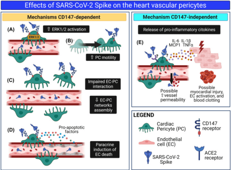 The study was from the Bristol Medical School in the UK and published in Clinical Science. In brief, the paper showed that the spike protein of the SARS-CoV-2 can disrupt cardiac pericyte functions independent of a COVID19 infection.