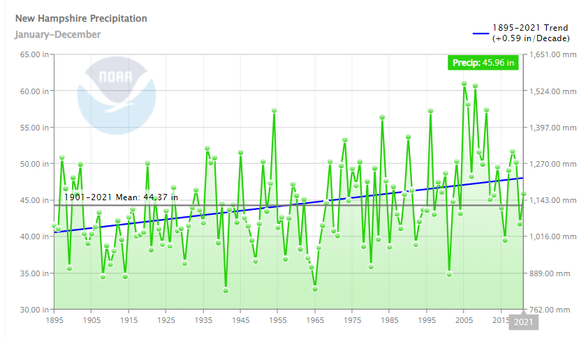 NOAA reports 45.96 inches of precipitation in NH in 2021, about  1.6 inches above the 120-year average. In other words, very average.