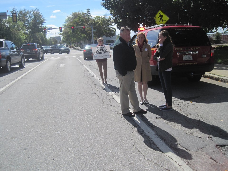 In 2014, NH Governor Maggie Hassan signed an unconstitutional buffer zone bill into law that allows an abortion business to take control of up to 25 feet of the public sidewalk and street and designate it as a no-free-speech zone where even silent prayer is banned.