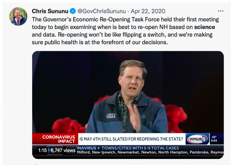 Sun-King Sununu constantly claimed his authoritarian COVID interventions … lockdowns, closing “nonessential” businesses, mask-mandates, etc. … were based on science. For example: