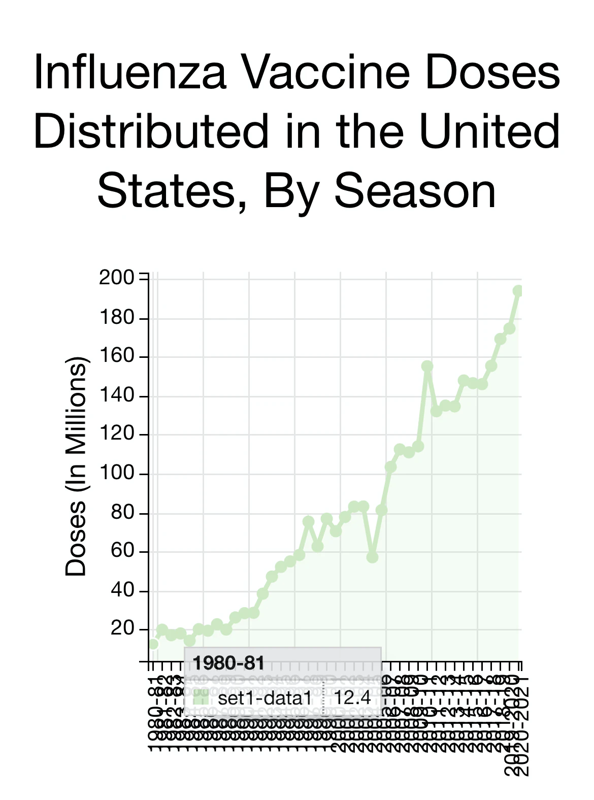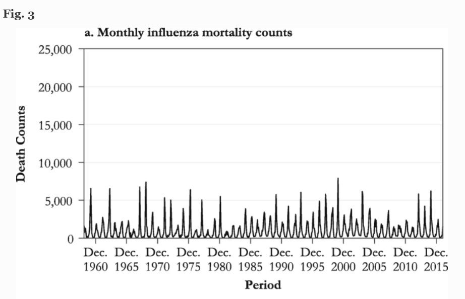 Influenza mortality has remained more or less constant for decades while the number of flu-vaccinated has skyrocketed.