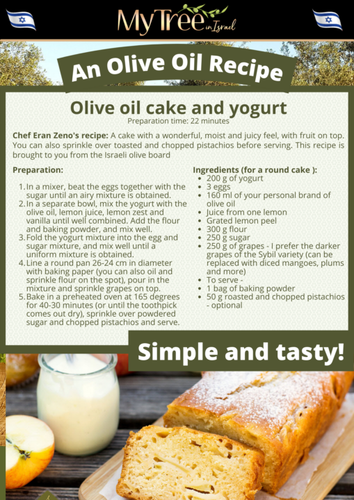 Another recipe courtesy of My Tree in Israel. (Full disclosure: I am friends with one of the company owners, but I receive no compensation for this. It’s just great olive oil and supports Israeli agriculture. Of course, as I said in my closing remarks in Survival Sunday, I also encourage supporting your local farmers and meat producers.)