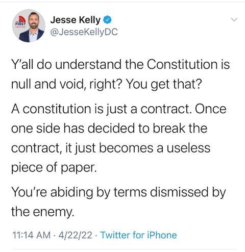 And MHO for this post’s winner. Not funny, but accurate. The Left has shredded the Constitution, but we’re still living by that broken contract.