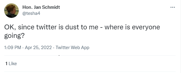 Schmidt is looking for someplace else to go, even though she can mute, block, or filter access to the nonsense she shares. Even under Musk’s ownership, Twitter would still allow her to try and hide from scrutiny. But she seems desperate for someplace else to go.