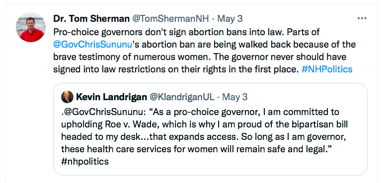 So … “Dr. Tom Sherman” posted this in response to Sun-King Sununu’s response to the leaking of a draft Supreme Court opinion overruling Roe v. Wade: