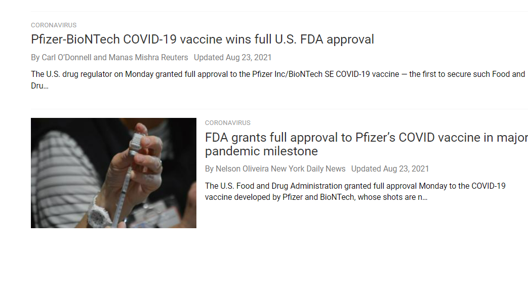 A search at NH ABC affiliate WMUR for the word Comirnaty produced zero results. Yuu can’t even find old reporting on the so-called approval. It’s been scrubbed.