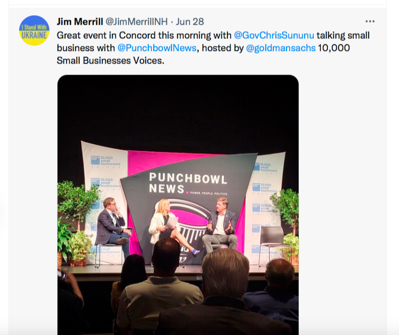 So here is Governor Groomer … a/k/a Sun-King Sununu, a/k/a Chrissy-Abortion … at a conference sponsored by Goldman Sachs, beneficiary of the 2008 bailouts and one of the heavyweights of Woke Wall Street and the Liberal World Order (ESG).