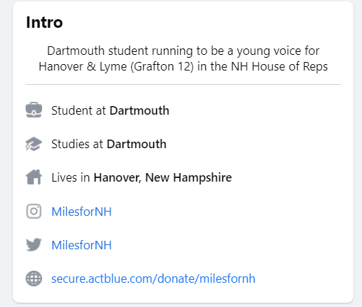 The page has become all about his campaign…to pretend he doesn’t still live in West Hartford, Connecticut. And he might pull it off. But I have a suggestion that might help the deception, Miles.