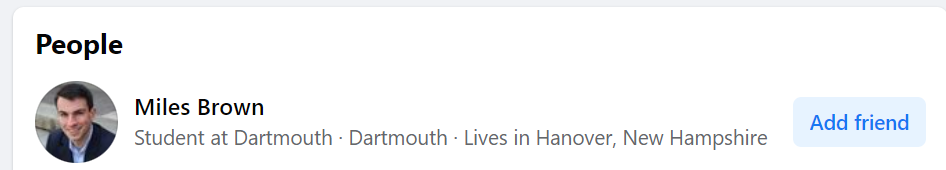 It may have been more than one day after our reporting, but Miles has scrubbed his social media of any obvious evidence that he lives in West Hartford, Connecticut. Here’s what his Facebook page looked like before he scrubbed it.