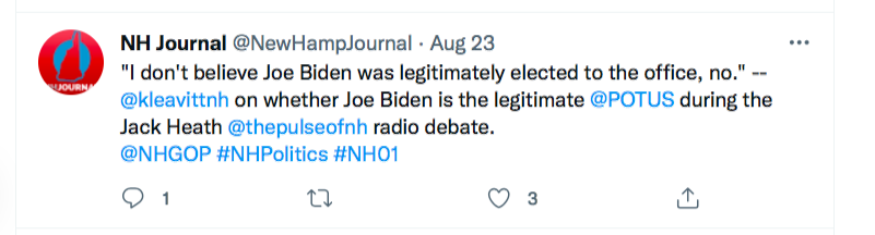 So some radio show recently hosted a debate for the GOP CD-1 candidates. Of course, the NHGOP-Establishment moderator tried to get the candidates to sign on to the NHGOP-Establishment’s narrative that 2020 was a resounding rejection of Trump and the GOP needs to get back to its Bush-Cheney-McCain-Romney roots. Karoline Leavitt was having none of it,