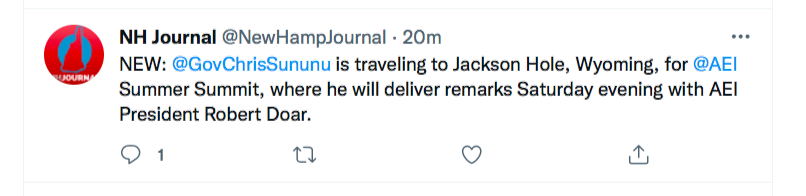 Sun-King Sununu To Spend Weekend At Jackson Hole With His Fellow Neocon-Elite-Globalists by Ed Mosca August 11, 2022 Jackson Hole Wyoming … where the rich and famous hang … and the neocon-globalist-NeverTrump-elites of the American Enterprise Institute celebrate their grift … welcomes New Hampshire’s Sun-King Chris Sununu: Author Ed Mosca Ed Mosca is ... Ed Mosca. View all posts XFacebookTelegramShare