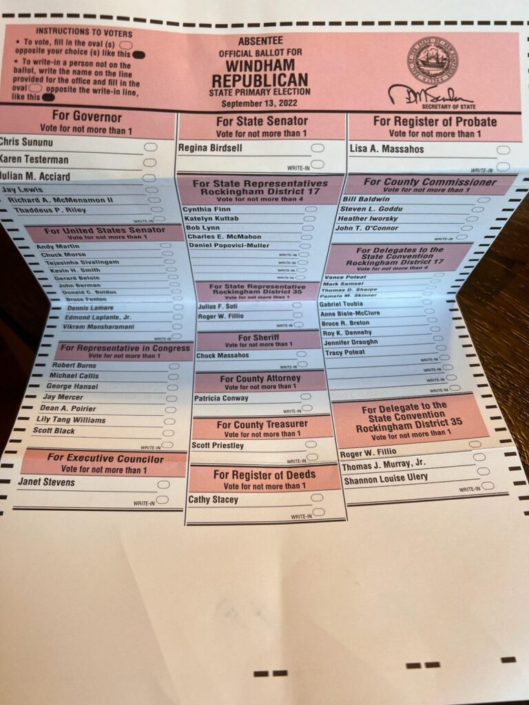 Sadly, the absentee ballot below was sent to a Windham voter for the 2022 primary election. It was folded through two ovals. History is repeating – and the results of Windham’s primary election are already in doubt before the first vote is even counted.