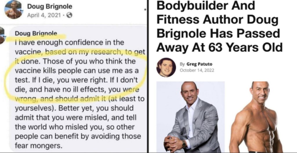 I don’t enjoy writing this, but it has to be done. Fitness author and bodybuilder Doug Brignole made news when he admitted he’d been vaxxed. But he didn’t just announce it. He framed the mRNA Jab debate around his very survival. “If I die, you were right. …If I don’t die, you were wrong.”