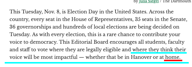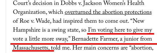 I can’t vote in any state but New Hampshire but listen to the actual words of students who live out of state and chose to vote here.