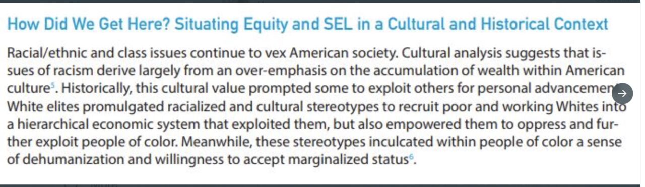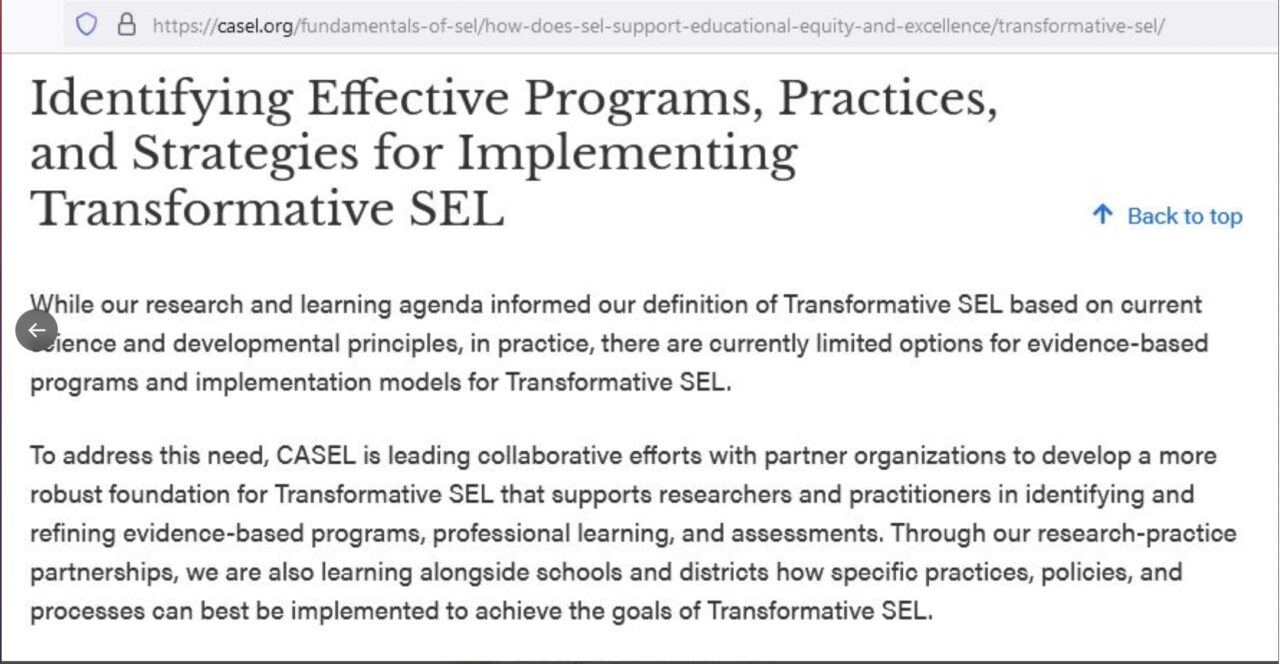 CASEL, which creates the standards that measure all SEL programs, began this transformation back in 2019. They want to leverage SEL to create children who are anti-racist social justice warriors. But anti-racism IS Critical Race Theory.