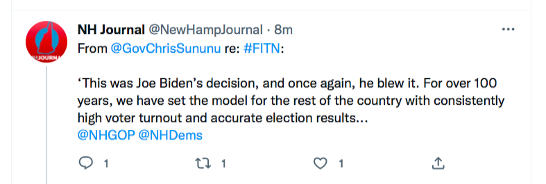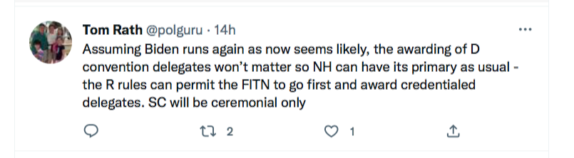 Joe Biden … America’s figurehead/imposter President …has weighed in on the Democrat Presidential primary. He wants South Carolina to go first. And the political-grifters in New Hampshire … the consultants, insiders, masterminds, blah, blah, blah … are melting down over the thought of losing all the money and attention FITN brings: