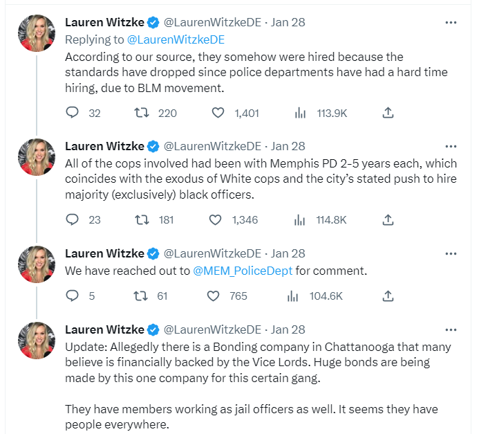 Several of the “Cops” who beat Tyre Nichols to death might be Vice Lords Street Gang Members who were embedded into the Memphis Police Department after it allegedly lowered its standards in a desperate need to get bodies into uniforms.
