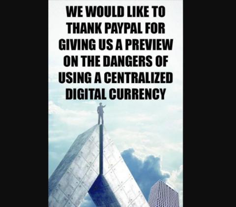 Sidenote: in pulling up the Paypal logo, this popped up. Given that the Fed and other large banks are doing “pilot projects” to digitize our dollars (allowing them to do their version of the Chinese Social Credit system as in “eating out too often? Donating to a conservative candidate or group?).Yeah, we’re giving you a time-out from your money: