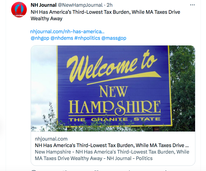 So, Mikey Graham has a post up claiming that New Hampshire is the second most popular State for domestic migration by “the wealthy” from Massachusetts due to its tax policy. If you take just a few moments to dig into the details, you will see that Mikey’s broader claim … that New Hampshire’s tax policy acts as a magnet for domestic migration … is pretty damn DECEPTIVE.