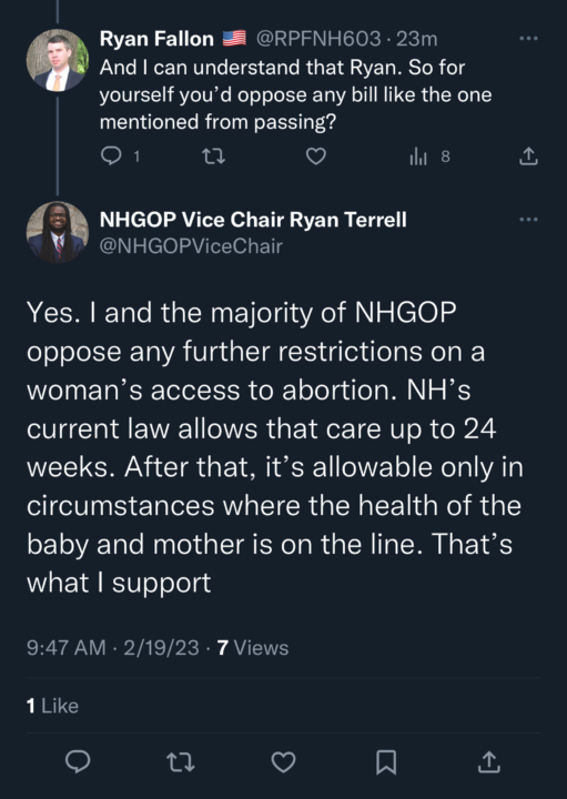 I recently had an email from a person that stated Ryan Terrell was against HB591 Fetal Heartbeat bill, which I am a co-sponsor of and is in the Judiciary committee now. His stance is against the NHGOP Platform, which I have a snippet of below.