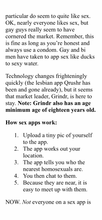 Of course, tf a student wants read (or listen to) sexually explicit content while at school, they can always just go to their favorite permissible porn book. The Sora Student Library App provides a host of sexually explicit books. Books with misinformation like…“Everybody does it!” when speaking of anal sex. The truth is, many people NEVER do that. It discusses anal douching and warns about the constant fear of STDs when it itches back there. It has pictures. Kids could get traumatized or hurt by some of these sex act recommendations. One book literally hyperlinks kids to dating apps where it teaches sex app usage.