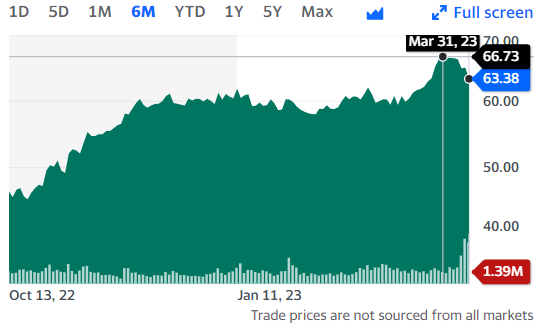 Now 4 billion is next to nothing for a company that size, and no one is ringing alarm bells or battening hatches. But the stock price had been on a six-month rise, up over 40%.