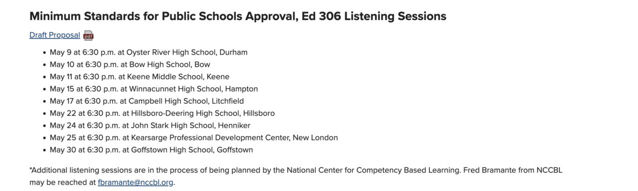 If this listening tour comes to your town, ask Fred Bramante for the results. Show us all PEER REVIEWED and INDEPENDENT studies on New Hampshire students under the CBE model. He sells this model like a used-car salesman, he should show everyone how it’s working or NOT working!
