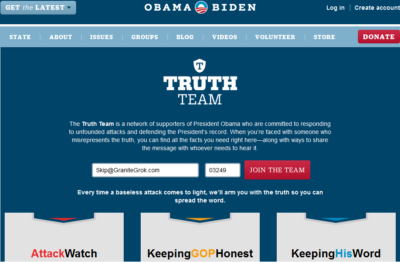 If you’ve forgotten what AttackWatch was, back in mid September Jim Messina and the Obama team concocted it as a place for people to identify and report opposition commentary about the President so they could “set the record straight.” This isn’t Nabisco asking people to let them know if something is wrong with the crackers. This is the office of a man basted in the corrupt Chicago Political Machine, charged with enforcing the nations laws as he sees fit, and technically the most powerful chief executive on the planet, asking people to report dissenters. Chilling.