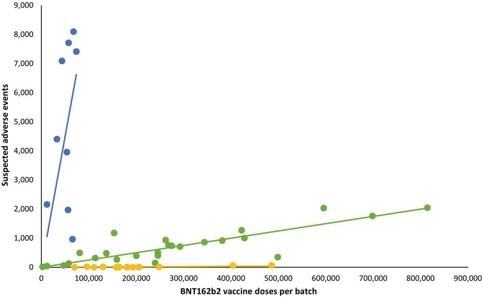 Reported adverse events were matched to vaccine batches and graphed.