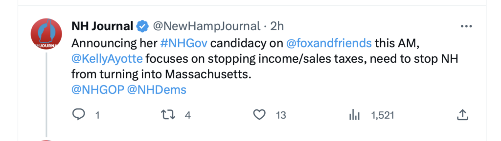 Memo to the NHGOP gubernatorial candidates: The NH-Communists Democrats running for Governor, with a few exceptions, stopped pushing “broad-based” taxes in 1996. Yet a quarter of a century later, the NHGOP continues to insist that this election is about an income tax (and/or a sales tax (which we actually already have, in part, in the form of the room-and-meals tax)). See:
