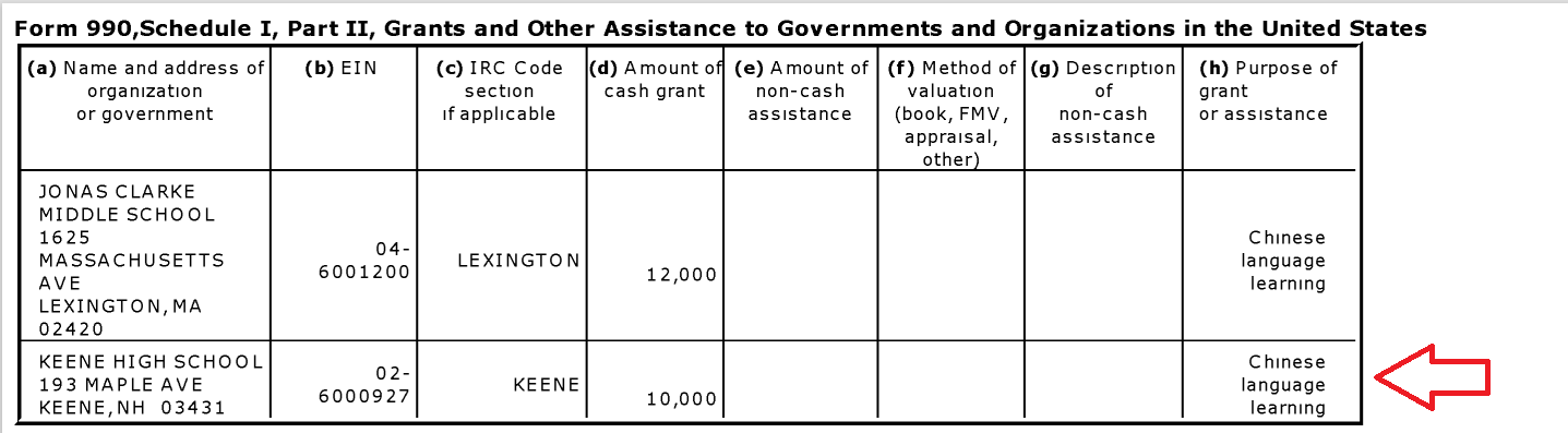 2021 seems to be when these influence-peddling operations began to get noticed and cut, which suggests to me either victory on the part of China or they’ve found another avenue for influence. Before that happened, Keene High School accepted 10,000.00 dollars from the Asia Society, which advances the CCP goals as noted above.