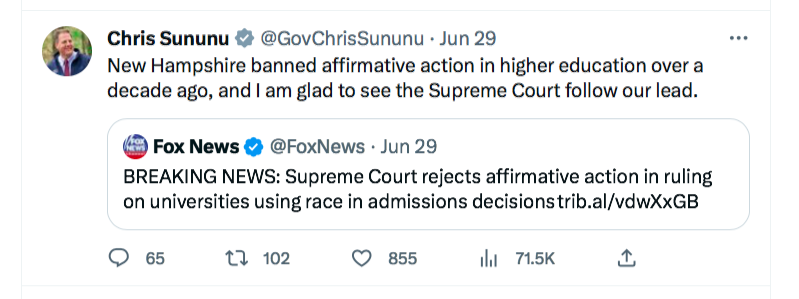 No … New Hampshire Did NOT End “Affirmative Action” In “Higher Education” “Years Ago”