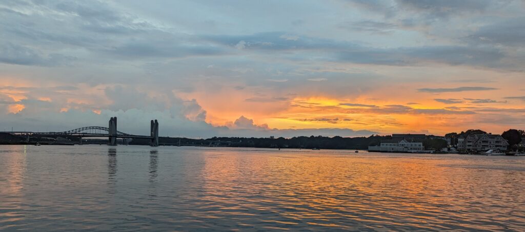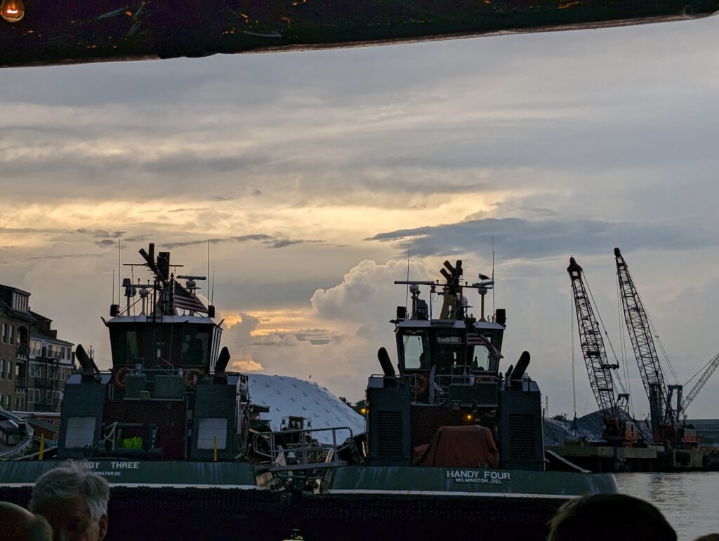 Portsmouth is celebrating its 400th anniversary (1623-2023), and part of that was a tall-ships flotilla scheduled for Thursday, July 27th. But the mere threat of thunderstorms canceled it, as it turns out, for no good reason. I was there, on the water, and I saw the tall ships and the weather.