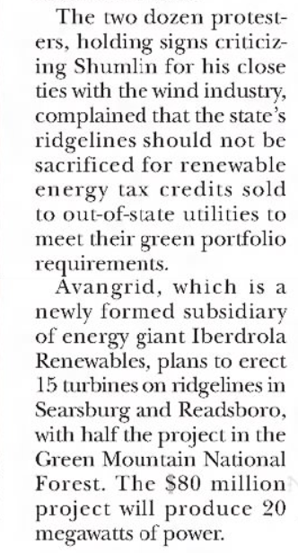 Rutland Herald Sep 20, 2016 protest Deerfield wind project.