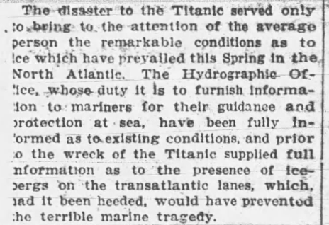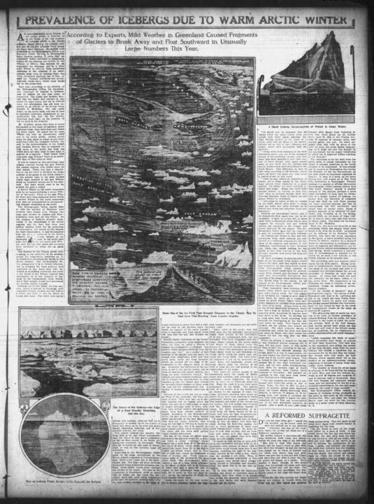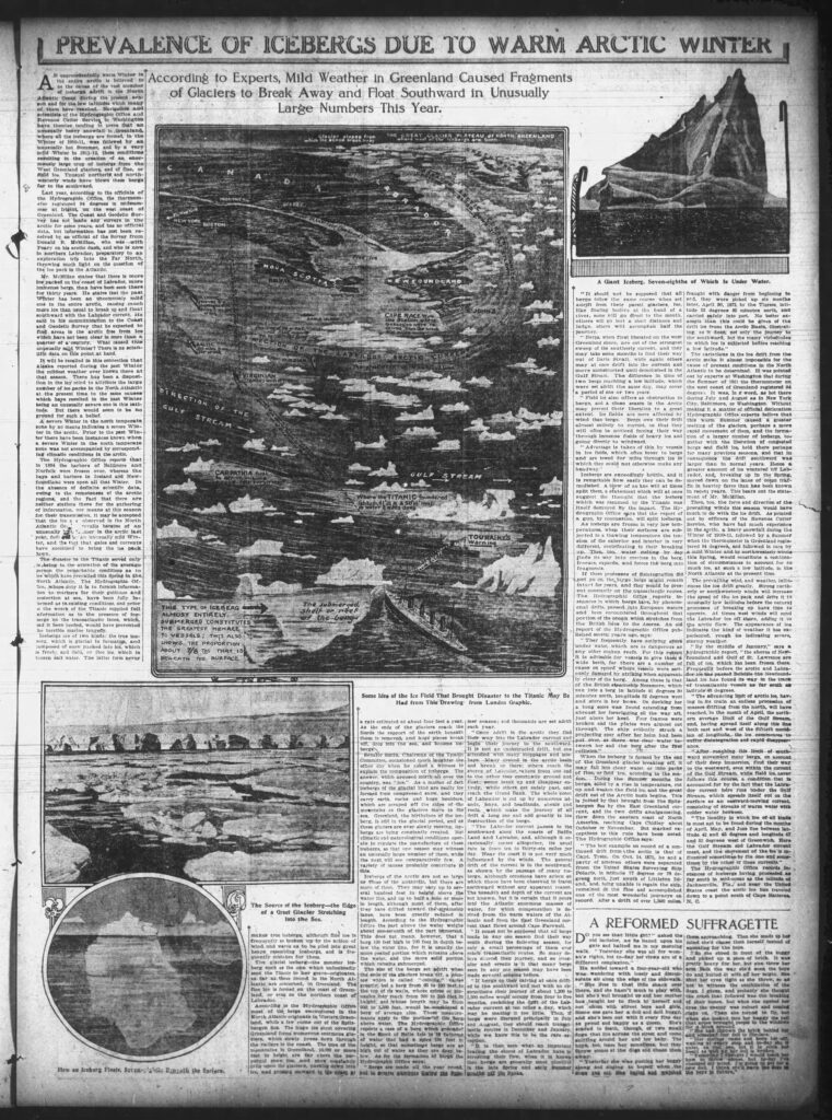 If we zoom in on the reporting, we see that a few weeks earlier, the Titanic struck one of those icebergs and sank into infamy.