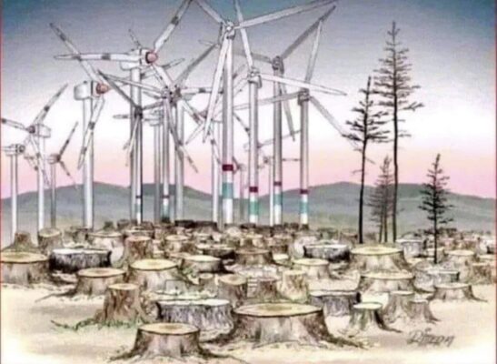 - The Scottish government forced to admit it has facilitated the felling of 16 million trees in this century to make way for new wind farms;