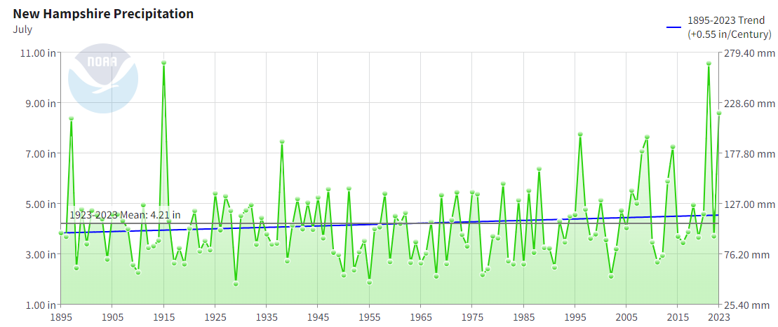 Rain happens in July, and so does drought, but July in the Granite State has been wetter in more recent years than not.