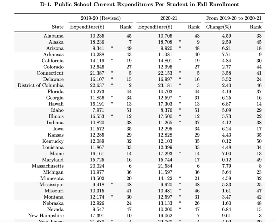 The main theme … at least for the time being … of the Kelly Ayotte campaign is that Governor Kelly would stop New Hampshire from becoming Massachusetts. This theme requires us to pretend that New Hampshire isn’t already Massachusetts. For example, it requires us to pretend that New Hampshire does not spend almost as much per pupil on public education as Massachusetts. Per NEA, as of 2021, Massachusetts spent the sixth most, while New Hampshire spent the seventh most: