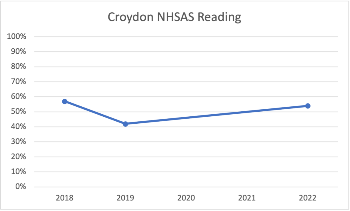 In 2022, the last year for which data is available for the New Hampshire Statewide Assessment System (NHSAS), 54% of Croydon’s students were considered proficient or above in reading. This was actually an improvement over their scores in 2019.