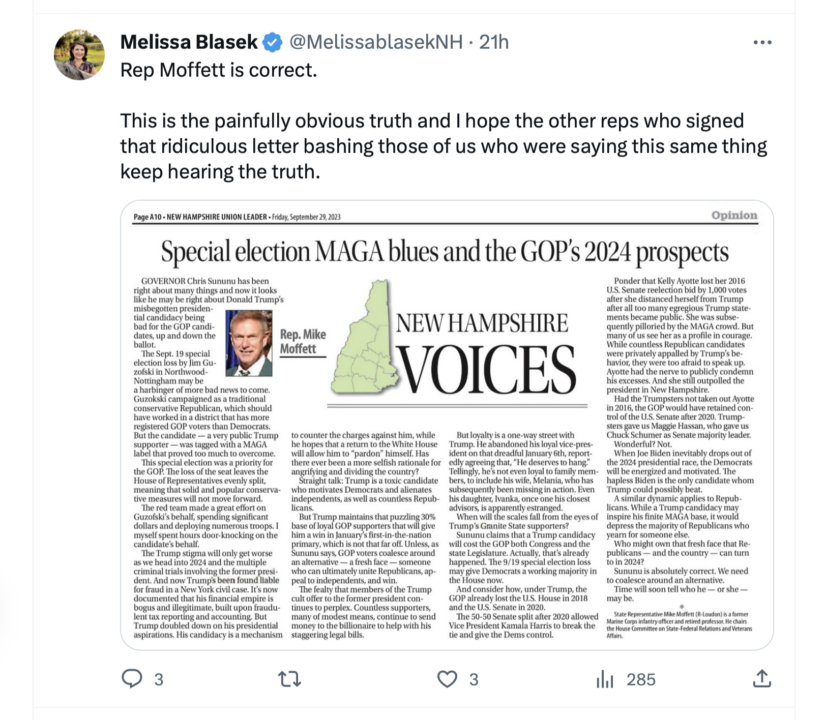 Note, also, how insulting NH-NeverTrump is to the voters they have failed to persuade … “[t]he fealty that members of the Trump cult offer to the former president continues to perplex”, “[w]hen will the scales fall from the eyes of Trump’s Granite State supporters”. Does NH-NeverTrump even realize how condescending and obnoxious they sound?
