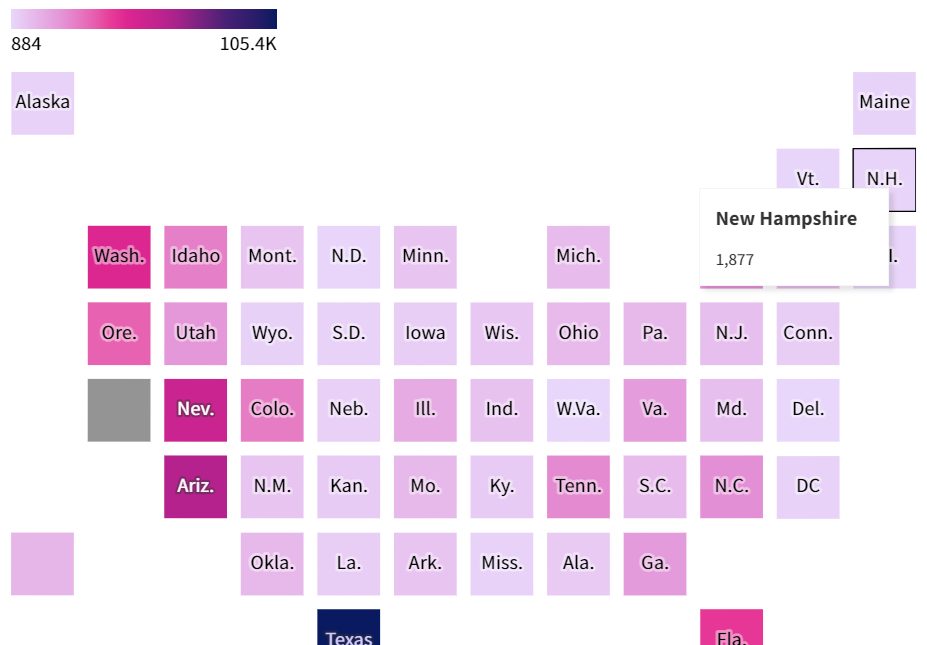 I can’t say whether anyone from states like Florida, Wyoming, Tennessee, the Carolinas or Dakotas, or any other appealing redder states uprooted to move to New Hampshire, but it seems unlikely. Californians, however – we got a bunch of those.
