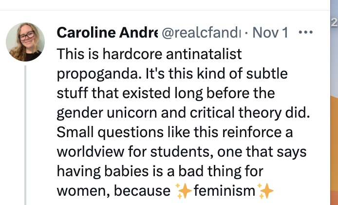 I was not homeschooled, private, or classically schooled. I was a public school AP student. I got a 5 on the AP Human exam. My lowest AP exam scores were 4’s. I was all in on this system, and I navigated it very well. I came across this because of tutoring… https://t.co/EV7Oaam9eT— Caroline Andrews (@realcfandrews) November 2, 2023