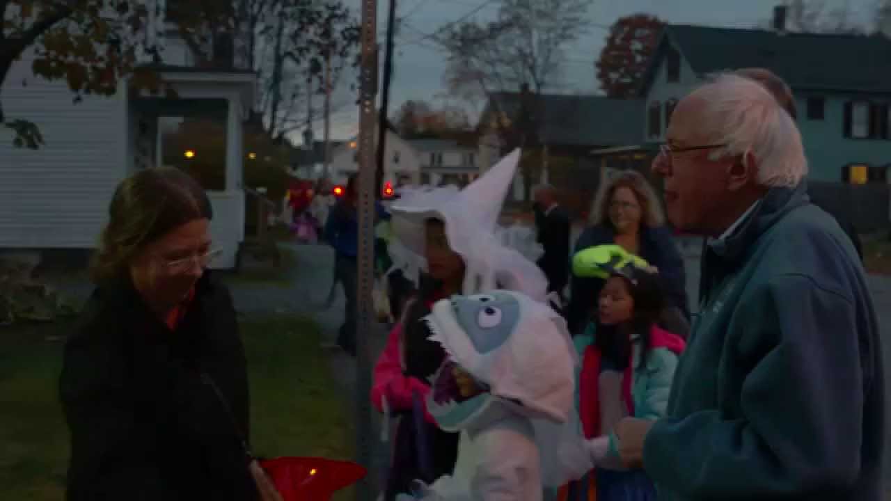 Last but certainly not least was our friend, who dressed up as Senator Bernie Sanders who seated himself in a lawn chair with mittens and a mask. This iconic image was so attractive to Vermonters that he was constantly surrounded by large groups, and as the children would gather with their parents, Uncle Bernie would have them pour their bags of candy onto the ground and then redistribute the goodies until