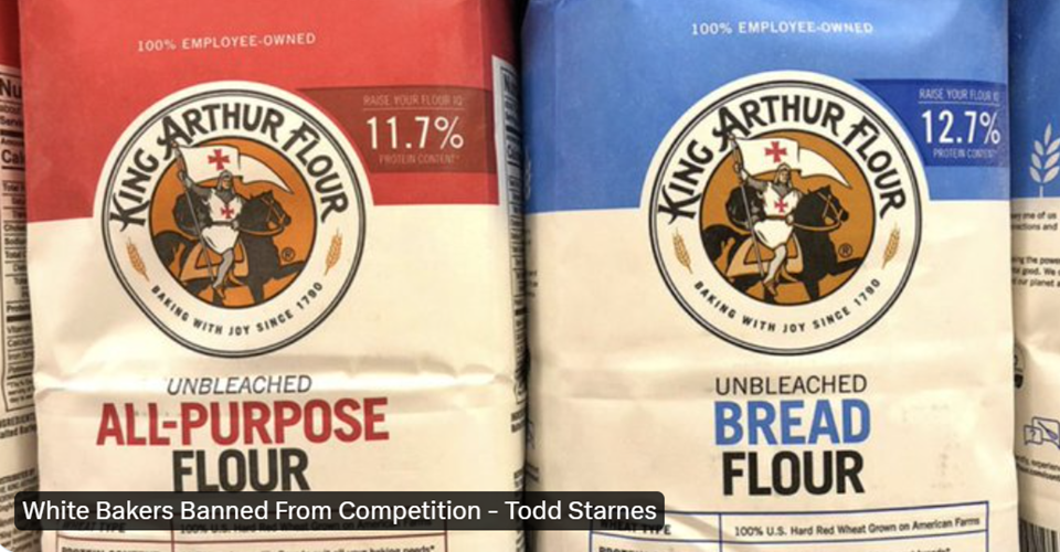 King Arthur, by the way, has been around since 1790, so maybe there is some guilt buried deep down, and this is Vermont, which is full of #woke libs, so, for all we know, the King Arther Baking Company owners (it is employee-owned if you’re interested) are #woke posers looking for some corporate street cred, and hey! – this may be their Bud Light moment. If it is, they deserve any commercial collapse that comes their way because you could never have a no-people-of-color baking contest.