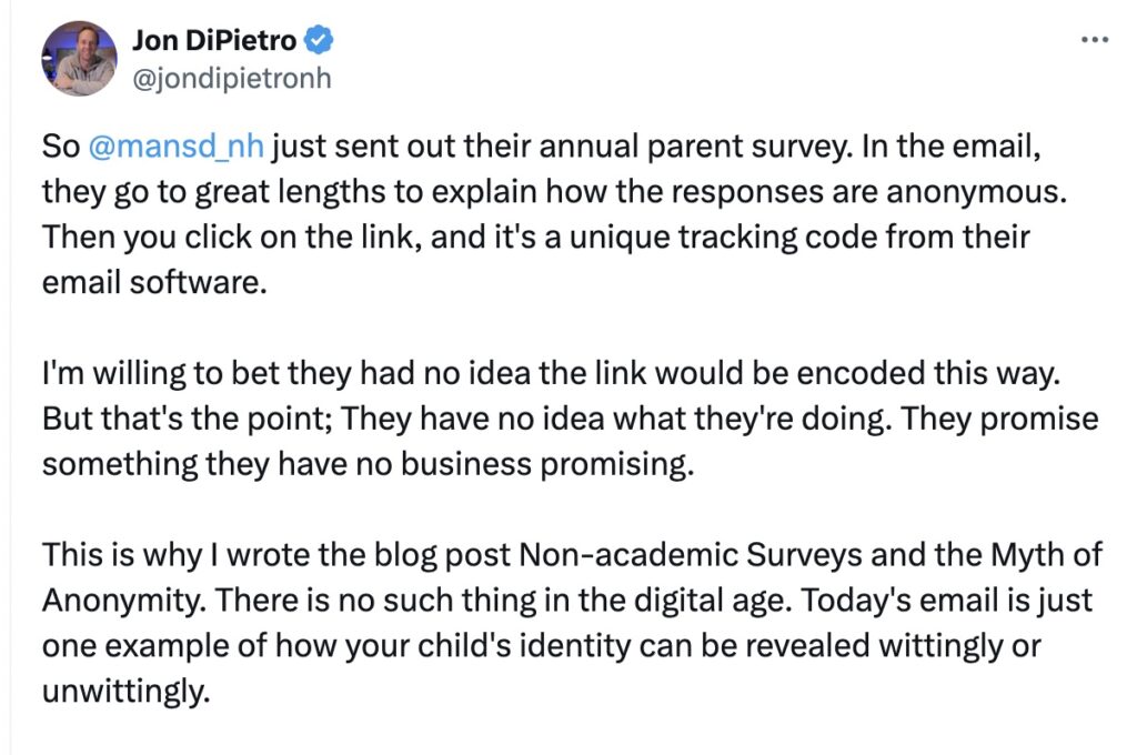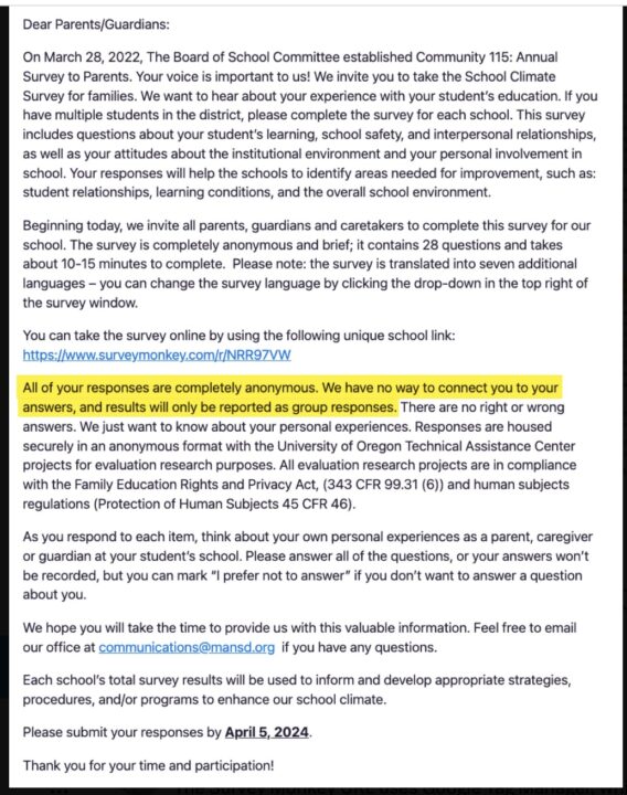 The Manchester School District recently sent out a parent survey. As Jon DiPietro noted in an X post: