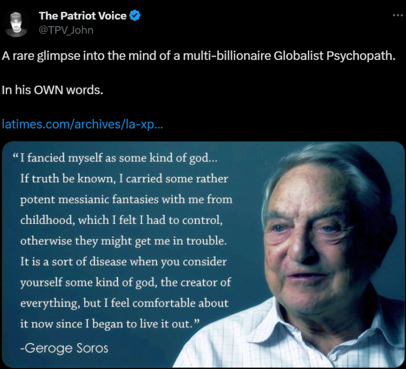 This is, I think, very telling – and not just about him, but about ALL the Globalists and, in general, about ALL that would call themselves our masters. Vanity, after all, is Satan’s favorite sin.