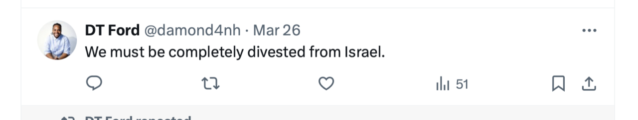 He’s back. We previously covered State Rep Damond Ford in: State Rep Damond Ford Doesn’t Know Much About History and State Rep Damond Ford … You CANNOT Be Progressive And Pro-Israel and Rep Damond Ford: Heaven Is Only For Communists. But there is more. Damond Ford, just yesterday, back to spewing his Woke-Communist hate for Israel: