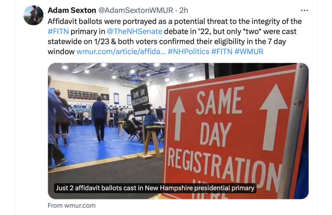 Adam Sexton wants you to believe that people voting WITHOUT ID is not a problem in New Hampshire. More specifically, some NHGOP have been pushing back against the absurd notion that “the right to vote” means the right to vote without showing valid identification … so here comes Adam to rescue the Woke-Communists (oh, so sorry, of course I meant “Democrats”). Adam Sexton is a propagandist, a mouthpiece for those Woke-Communists calling themselves the New Hampshire Democrat Party.