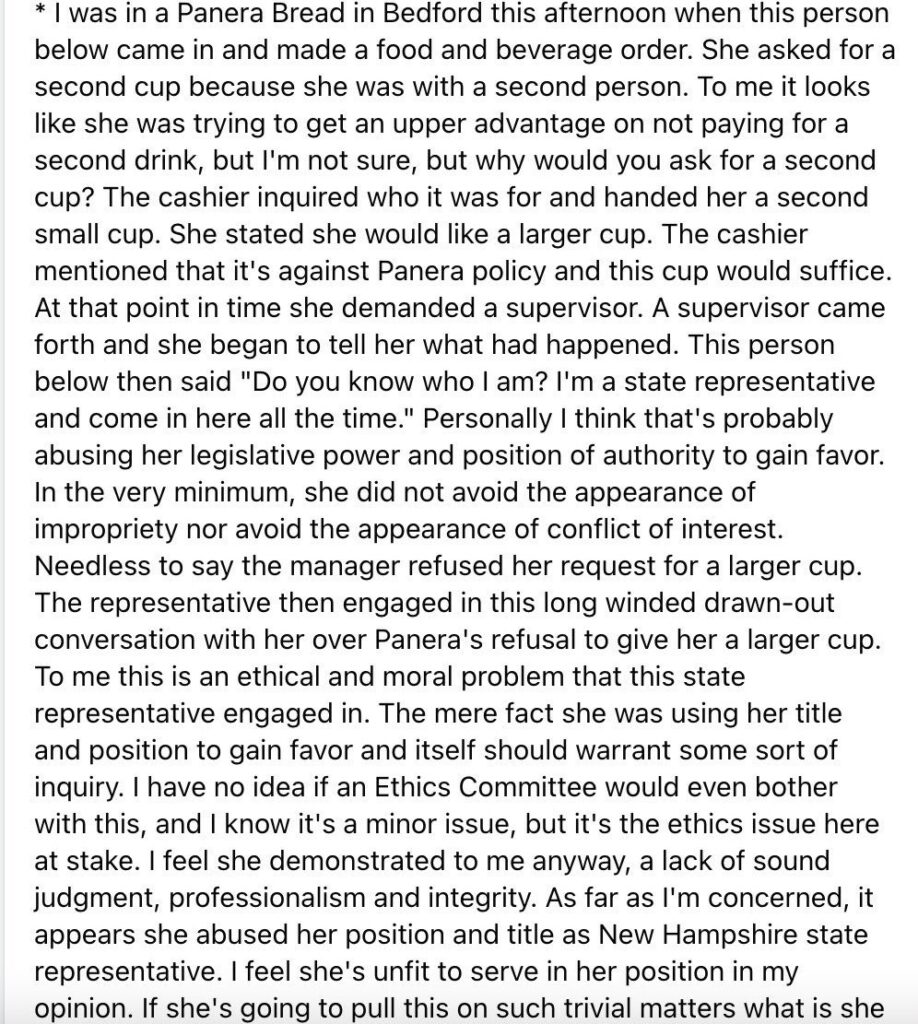 She will quickly let you know who she is and why she is entitled to free stuff from Panera.